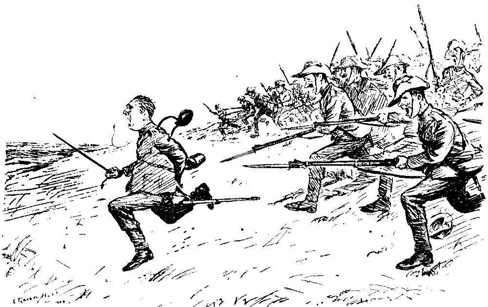 Was there ever protean like Mr. Punch! The little man is a wonder. In so many guises do we encounter him—now as tourist, again as playgoer, as huntsman, as artist, as bohemian, and equally as stay-at-home philistine, on the bench and on the golf-links, ashore and afloat, where not and how not?—that we need be in no wise surprised to find him on the warpath. Is he not the official jester of a warlike people?