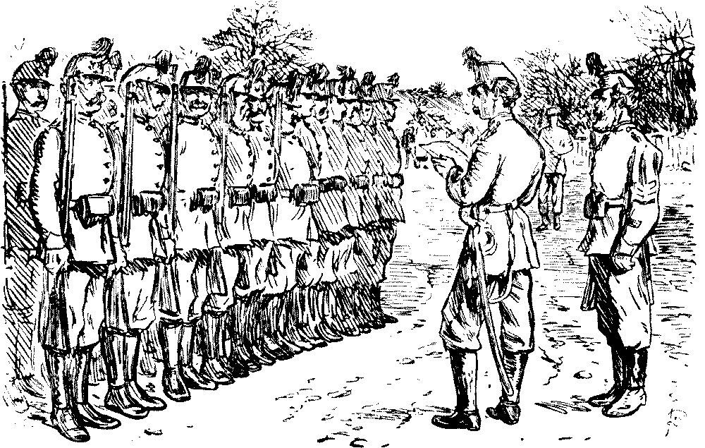 Of course it may be suggested that in the present book we do not have what is entirely a record of his achievements on many a well-fought field. There are not many echoes here of real red war, but the mimic battle with its humours is well in evidence. The only recent experience of the real thing leaves Mr. Punch too sore of heart to say much about it. But as we are all believers in the maxim "in time of peace[Pg 6] prepare for war," and as most of our time is peaceful, we are always "preparing"—hence, perhaps, the reason why we are never ready. But there is a deal of humour in the process, and it is for fun we look to Mr. Punch. Nor shall we look vainly here, for in the past Charles Keene found many of his happiest subjects in the humours of military life and volunteering, while to-day Mr. Raven-Hill, himself an enthusiastic volunteer, ably carries on the tradition, and has many brilliant aiders and abettors.