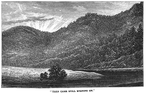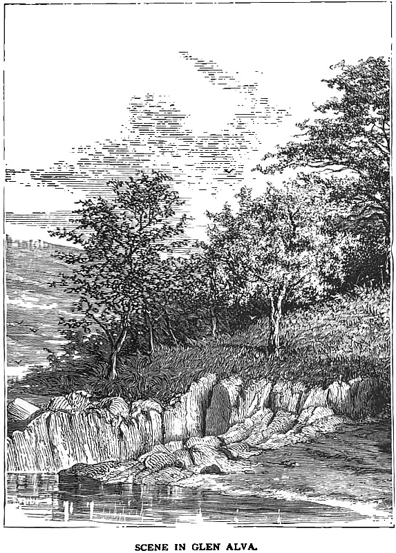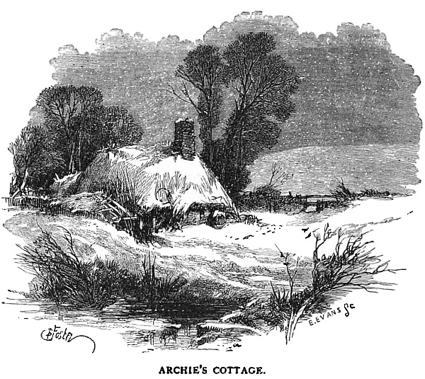 Kenneth had two long Scotch miles to walk, down into a thicket of fir trees first, across a rustic bridge, under which the brown stream was dashing and swirling and ever and anon breaking itself into foam against the boulders. It was very dark down here, but Kenneth was soon away out into the open country again, and the roar of the river was no more heard. By-and-bye the road led through a wood of oak, ash, and elm trees, with now and then the dark head of a pine tree shooting high up into the sky. The moonlight showed in patches here all along the road, there was the sound of falling water not far off, mingling with the whispering of the wind among the leaves, now crisp with the sunshine of the long bright summer, and there was occasionally the mournful cry of the brown owl, which made Kenneth feel lonesome and “eerie,” and he was not sorry when he was clear of that dark gloomy wood, and saw up on a hillside the light shining yellow through the blind of Keeper McCrane’s cottage.
