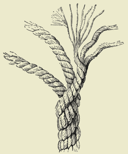 "This Indian lived here alone above three years; and although he was several times sought after by the Spaniards, who knew he was left on the island, yet they could never find him. He was in the woods hunting for goats, when[Pg 9] Captain Watlin drew off his men, and the ship was under sail before he came back to shore. He had with him his gun, and a knife, with a small horn of powder, and a few shot; which being spent, he contrived a way, by notching his knife, to saw the barrel of his gun into small pieces, wherewith he made harpoons, lances, hooks, and a long knife; heating the pieces first in the fire, which he struck with his gun-flint, and a piece of the barrel of his gun, which he hardened, having learnt to do that among the English. The hot pieces of iron he would hammer out and bend as he pleased with stones, and saw them with his jagged knife, or grind them to an edge by long labour, and harden them to a good temper as there was occasion.[5] With such instruments as he made in that manner, he got such provisions as the island afforded, either goats or fish. He told us that at first he was forced to eat seal, which is very ordinary meat, before he had made hooks; but afterwards he never killed any seals but to make lines, cutting their skins into thongs. He had a little house, or hut, half a mile from the sea, which was lined with goat's skin; his couch, or barbecu of sticks, lying along about two feet distance from the ground, was spread with the same, and was all his bedding. He had no clothes left, having worn out those he brought from Watlin's ship, but only a skin about his waist. He saw our ship the day before we came to an anchor, and did believe we were English; and therefore killed three goats in the morning, before we came to an anchor, and dressed them with cabbage, to treat us when we came ashore."