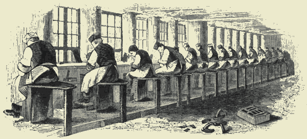 Hosiery manufacture—The stocking-frame—The circular hosiery-machine—Hats—Gloves—Boots and shoes—Straw-plat—Artificial flowers—Fans—Lace—Bobbin-net machine—Pins—Needles—Buttons—Toys—Lucifer-matches—Envelopes255