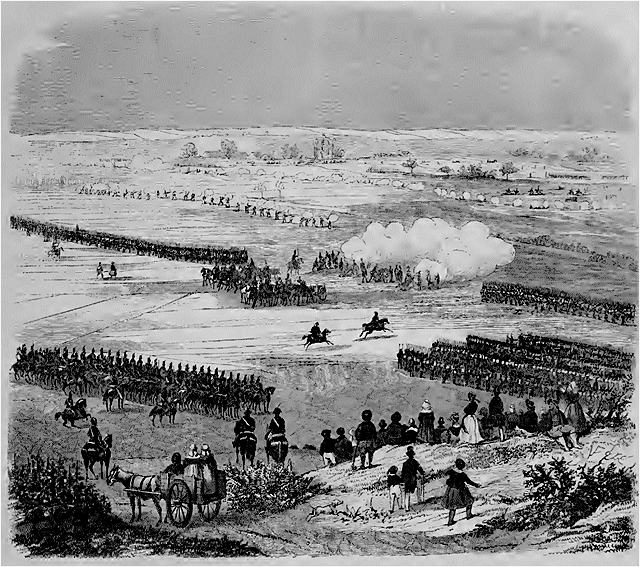 Puis, après un court répit, sans permettre que les chevaux soient même débridés, Santa-Anna l'ait sonner le boute-selle de tous les Jarochos, prend avec lui quelques régiments d'infanterie, et laissant au général Arago le soin de défendre la place, se met en marche pour aller offrir la bataille à Calderon, le joint à Tolomé, et quoique sans artillerie, avec une cavalerie indisciplinée, donne l'ordre de commencer l'attaque.