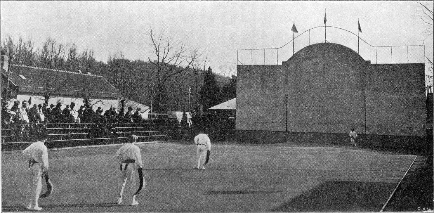 In den nazomer van 1903 werd door de Spaansche kolonie te Parijs, die zeer talrijk en zeer rijk is, gepropageerd voor het „Pelote Basque”. Het wordt gespeeld op den fronton te Neuilly, even buiten de vestingwerken, met 't gevolg dat de fronton in de rue Borghese een plaats van samenkomst is geworden voor de aanzienlijke Spanjaarden. Bij dit spel wordt de bal door middel van een handnap tegen den muur geslagen en als hij terugkomt, moet hij door de tegenpartij teruggeslagen worden. Het spel moet een groote behendigheid vereischen, maar is niet zonder gevaar. In de Spaansche kustprovinciën langs den Atl. Oceaan wordt dit spel mede nog gespeeld; (de Baskische provinciën; vandaar de naam Pelote Basque.)