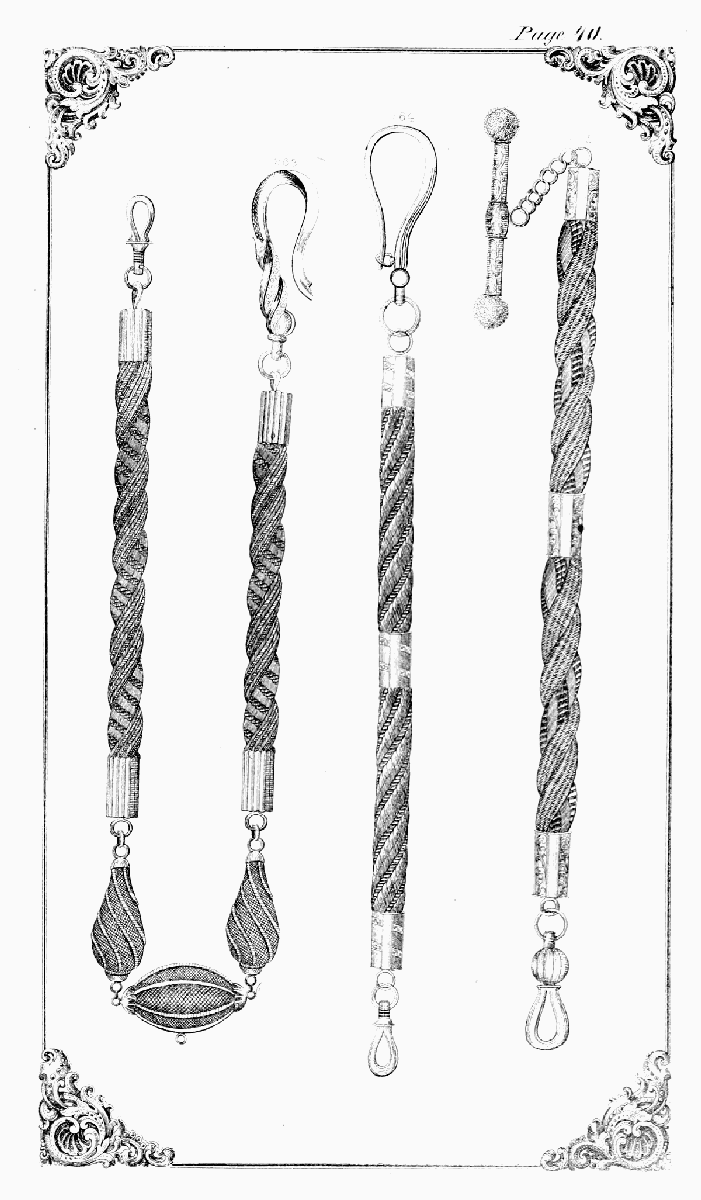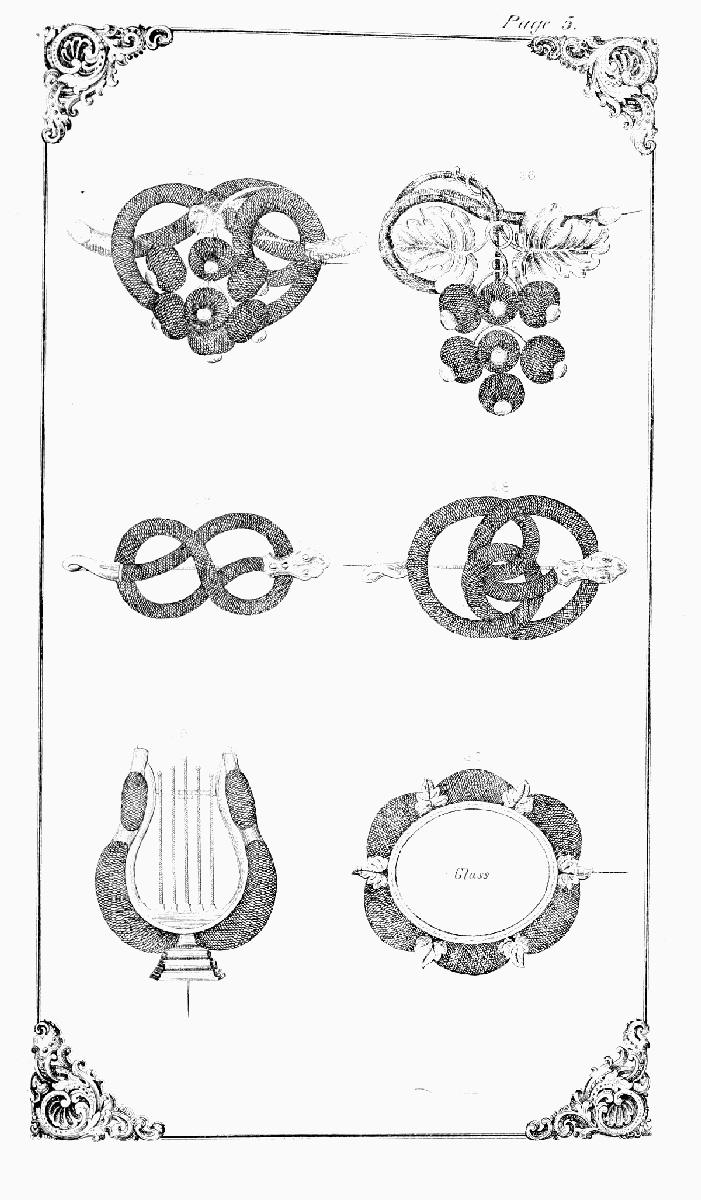 The necessity for a comprehensive work, giving a full and detailed explanation of the Art of manufacturing Hair Work in all its various branches, has been so frequently urged upon the attention of the author, that, in compliance with an almost universal demand, he has concluded to publish a book which will clearly illustrate the Art of Hair Dressing, and making Hair Jewelry and Hair Work of every description. His perfect familiarity with the business—the result of many years' successful experience—renders him eminently competent to impart the fullest information upon the subject of which he treats, while the great consumption and rapidly increasing demand for every description of Hair Goods, will make this work he now presents to the public, one of particular interest to all classes. Heretofore the Art of making these goods has been zealously guarded by a few dealers, who have accumulated fortunes, and would still retain it a profound secret but for the publication of this book. This is the only descriptive volume ever published on Hair Work. It is an elaborate, carefully prepared book, containing over one thousand drawings, devices and diagrams, engraved at great expense to the publisher, and accompanied with the most comprehensive instructions. It not only reveals to the most ordinary comprehension the hitherto concealed mysteries of the Art, but will prove an indispensable adjunct to every lady's toilet table, as by its aid she will not only be able to dress her own hair in every variety of style, but make her own Hair Jewelry and articles of Hair work, including Switches, Braids, Curls, Waterfalls, &c., assisted by a reference to plates of the most modern European and American styles. For children, no art or accomplishment is more useful than the ability to make articles of tasteful ornament in Hair Work. This work will open[6] to all such persons a path to agreeable and profitable occupation. Jewelry Dealers, from the clear instructions herein given, can manufacture any required pattern of Hair Jewelry, and add, without extra expense, a new and lucrative branch to their business.
