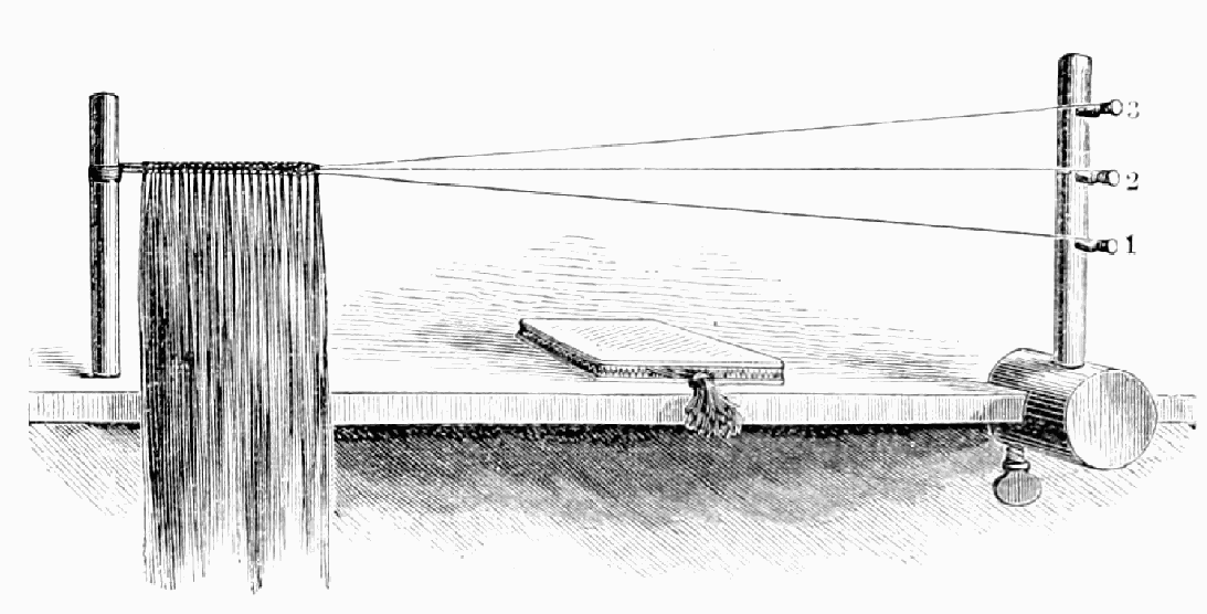 Braid this over a small wire, with a hole in one end like the eye of a needle, so as to draw a small cord in the place of the wire. When you have it braided, take off your weights, tie the ends fast on the wire, and push the braid together; then boil in water about ten minutes, and then take out and put it in an oven as hot as it will bear without burning, until it is quite dry; then take it out and slip it off the wire and on the cord, and sew the ends so it will not slip, and put a little shellac on the end to keep it fast. If you want it elastic, use elastic cord. To vary the size of the braid, vary the number of hairs in a strand.