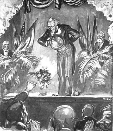 The Mirrors of Washington was by way of being a pioneer, at least for America. Overseas, it is habitual enough to exhibit beneath the literary microscope the politically great and near-great, and even to dissect them—often enough without anæsthesia. To our mind, such critical examination is healthily desirable. Here in America, we are case-hardened to the newspapers, whose appraisal of political personages is, after all, pretty well confined to the periods of pre-election campaigning. And we are precious little influenced by this sort of thing; the pro papers are so pro, and the anti papers so anti, that few try to determine how much to believe and how much to dismiss as routine partisan prevarication.