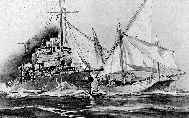 Dessin d'Albert Sébille, à bord du torpilleur Spahi.