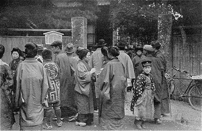 Ce temple s'élève dans l'enceinte de la petite propriété dont, par testament, le général fit don à la ville. La maison de Shinzaka machi qui vit le suicide émouvant du dernier des samurais, de l'incarnation vivante du Bushidô, est restée telle qu'au jour du drame. Les murs de la petite chambre du deuxième étage, dans la maisonnette de style européen, sont encore tachés du sang de Nogi. De petits écriteaux cloués sur chaque porte disent: «Chambre de repos de Mme Nogi. Chambre du suicide de Mme Nogi!» Et je remarque que devant cette chambre un groupe serré d'étudiantes se prosterne. Quelques-unes pleurent de vraies larmes.