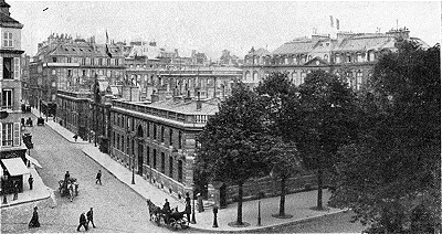 Le palais de l'Elysée vu de la place Beauvau. A gauche,