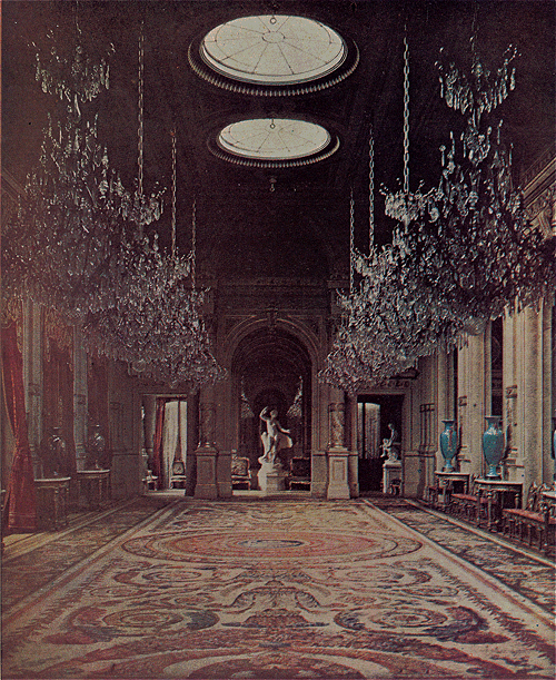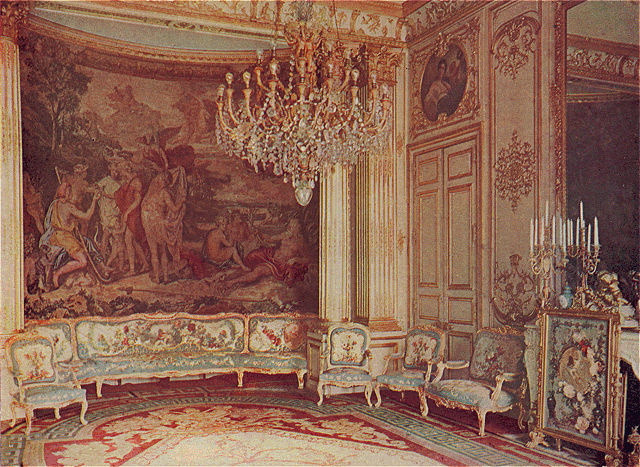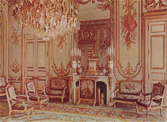 Or, la marquise de Pompadour a une envie folle de l'hôtel d'Évreux: voilà plusieurs mois qu'elle convoite cette fastueuse installation dont la situation admirable lui plaît infiniment. La marquise, d'ailleurs, ne cesse pas d'acquérir des propriétés nouvelles. Elle possède déjà les châteaux de Crécy et de la Celle, ainsi que ses ermitages de Versailles, de Fontainebleau et de Compiègne, tout cela ne lui suffit point; elle achète l'hôtel d'Évreux pour 730.000 livres, y appelle aussitôt une légion d'ouvriers et d'artistes, entasse dans ses nouveaux salons un mobilier d'une richesse inouïe et tapisse les murailles avec les Gobelins que Sa Majesté a eu la gracieuseté de lui faire envoyer. Le peuple chansonne la prodigalité de la marquise, les épigrammes pleuvent et l'on affiche des placards critiquant les dépenses exagérées de la favorite. Celle-ci ne se laisse pas émouvoir; elle poursuit son oeuvre, embellit l'hôtel d'Évreux et, en dernier lieu, agrandit d'un coup les jardins potagers qui s'étendent jusqu'aux avenues Montaigne et Matignon actuelles.