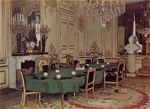 L'Elysée, palais des présidents de la République française, est un monument discret, pourrait-on dire, et devant lequel le passant éprouve plus de curiosité que d'admiration. Ce n'est pourtant point une bâtisse vulgaire: seule l'exiguïté de l'espace vide qui l'entoure et la simplicité des murs ou des grilles qui protègent son parc lui valent cette renommée sans éclat. Vertes, l'Elysée, ce n'est pas le Louvre et son parc, ce n'est pas les Tuileries, mais ce palais clos et caché renferme des beautés dont l'existence mérite d'être rappelée de temps en temps au public oublieux. L'installation de M. Raymond Poincaré dans le palais de l'Elysée nous a semblé motiver suffisamment la publication d'une série de documents sur ce monument. Ces documents sont de deux sortes: d'une part M. Marc Varenne, qui fut le chef du secrétariat particulier de M. Fallières, a résumé pour nous l'historique du palais, et nous avons nous-mêmes réuni quelques renseignements sur son utilisation actuelle; d'autre part nous avons fait prendre plusieurs vues en couleurs des principaux salons, cabinets ou façades de la demeure de nos chefs d'État, on les voit reproduites aux pages suivantes. Cette partie de notre travail sur le palais national est absolument nouvelle et originale, et l'on peut juger que nos collaborateurs ont pleinement réalisé le projet que nous avions formé de composer, par l'image, une documentation inédite, à la fois historique et artistique, sur le palais de l'Elysée.