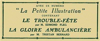 1º LA PETITE ILLUSTRATION, Série-Théâtre nº 10: Le Trouble-Fête, de M. Edmond Fleg, et La Gloire ambulancière, de M. Tristan Bernard;