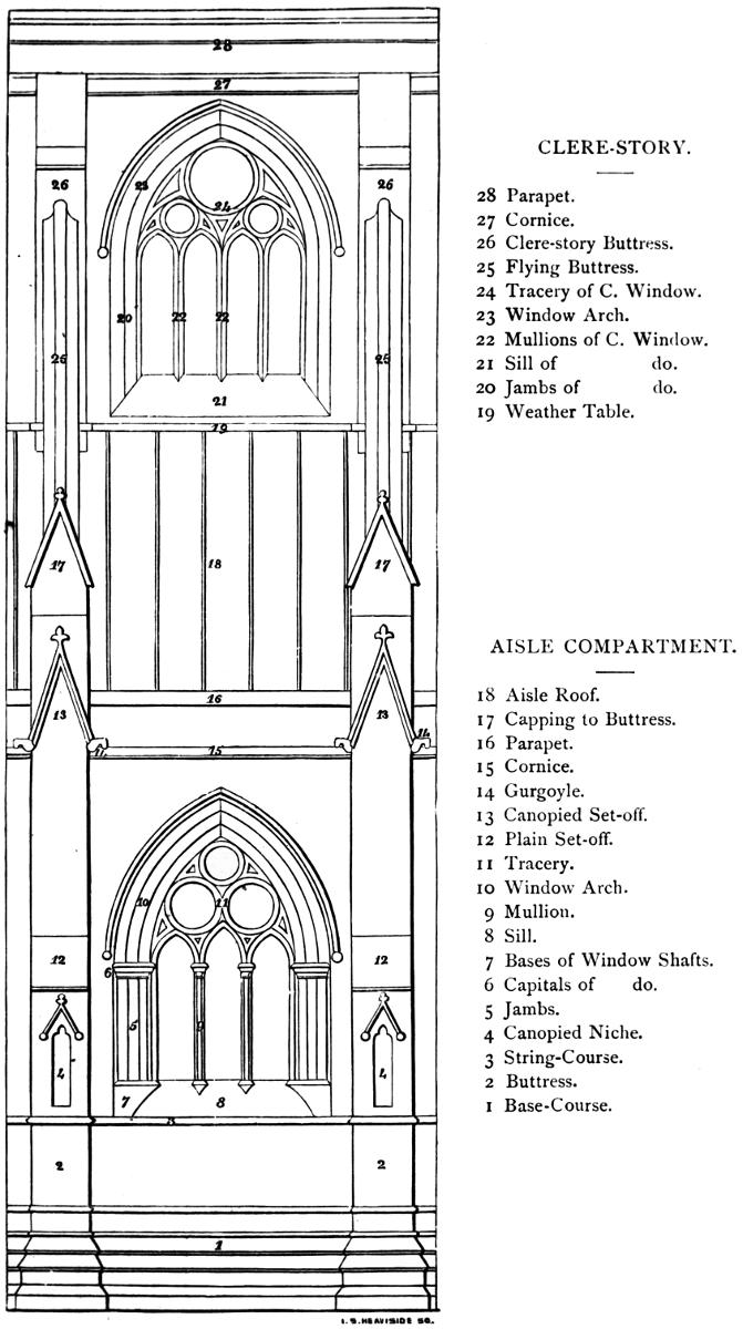 Instead therefore of entering, as is usual in elementary works of this nature, into a detailed account of all the parts of an Ecclesiastical structure, a certain portion only of such a building has for this purpose been selected, and so exhibited in the garb in which it appeared at successive intervals of time, as to present to the reader a means of comparison that will enable him readily to apprehend the gradual change of form through which it passed from the Eleventh to the Sixteenth Centuries, and at once to recognise the leading characteristics of the several Periods into which it is here proposed to divide the History of our National Architecture. Having thus fixed these leading characteristics in his mind, he will then be in a condition to follow us hereafter, if he pleases, into the detail of the whole[Pg 2] subject, and to become familiar with those niceties of distinction, the detection of which—escaping, as they do, the eye of the general observer—contributes so materially to the enjoyment of the study, and a perfect acquaintance with which is so absolutely essential to a correct understanding of the true History of the Art.
