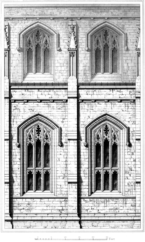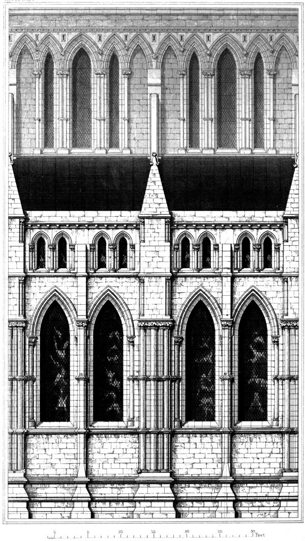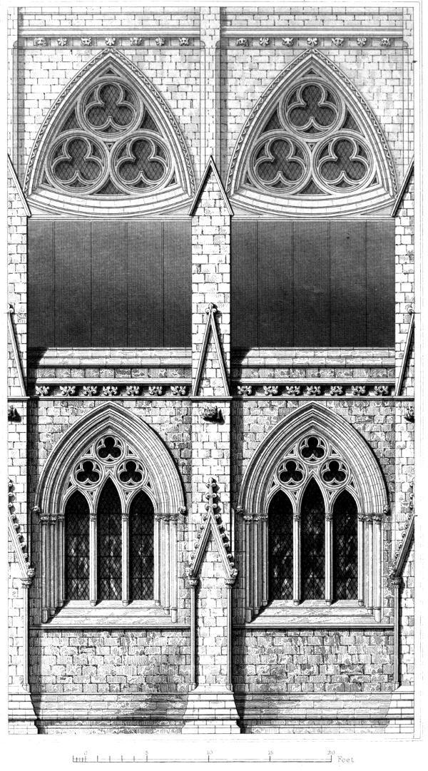 For half a century or more, after the disappearance of the circular arch, the window appeared under a form, which from its general resemblance to a lancet, in its length, breadth, and principal proportions, rather than from any uniform acuteness in the shape of its head, led to the universal application of that term to all the windows of this Period. This observation applies equally to the window whether used singly, or in groups of two, three, five, or seven; and equally also to the later as to the earlier examples of this Period.