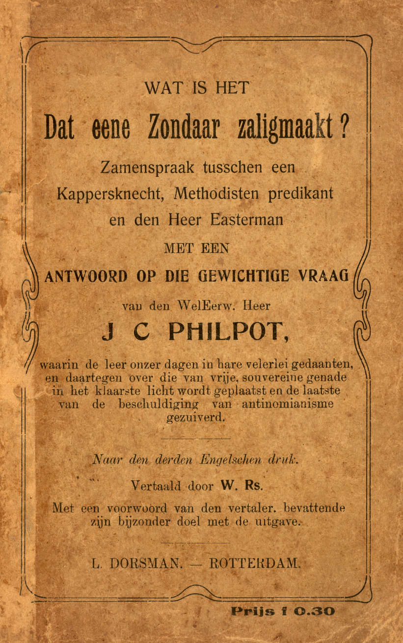 Dus redenerende ging de tijd heen, tot mij dezer dagen het volgend geschrift ter hand kwam, waarin ik zoo volkomen de in mijne ziel levende overtuiging en bevinding vond uitgesproken, dat ik geen beteren weg wist om aan mijnen reeds lang gekoesterden wensch te voldoen, dan door dit werkje, vooral het gedeelte van mijnen geliefden Philpot, te vertalen en in het licht te geven, met eenige woorden ter inleiding van mijne hand.