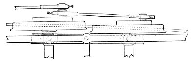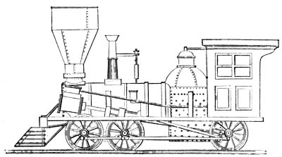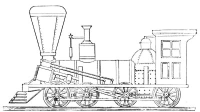 (p. 12) These early locomotives, built in 1834, were the types of Mr. Baldwin's practice for some years. Their general design is shown in Figure 3. All, or nearly all of them, embraced several important devices, which were the results of his study and experiments up to that time. The devices referred to were patented September 10, 1834, and the same patent covered the four following inventions, viz.: