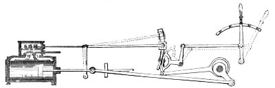 Matthias W. Baldwin, the founder of the establishment, learned the trade of a jeweler, and entered the service of Fletcher & Gardiner, Jewelers and Silversmiths, Philadelphia, in 1817. Two years later he opened a small shop, in the same line of business, on his own account. The demand for articles of this character falling off, however, he formed a partnership, in 1825, with David Mason, a machinist, in the manufacture of bookbinders' tools and cylinders for calico-printing. Their shop was in a small alley which runs north from Walnut Street, above Fourth. They afterwards removed to Minor Street, below Sixth. The business was so successful that steam-power became necessary in carrying on their manufactures, and an engine was bought for the purpose. This proving unsatisfactory, Mr. Baldwin decided to design and construct one which should be specially adapted to the requirements of his shop. One of these requirements was that it should occupy the least possible space, and this was met by the construction of an upright engine on a novel and ingenious plan. On a bed-plate about five feet square an upright cylinder was placed; the piston-rod connected to a cross-bar having two legs, turned downward, and sliding in grooves on the sides of the cylinder, which thus formed the guides. To the sides of these legs, at their lower ends, was connected by pivots an inverted U-shaped frame, prolonged at the arch into a single rod, which took hold of the crank of a fly-wheel carried by upright standards on the bed-plate. It will be seen that the length of the ordinary separate guide-bars was thus saved, and the whole engine was brought within the smallest possible compass. The design of the machine was not only unique, but its workmanship was so excellent, and its efficiency so great, as readily to procure for Mr. Baldwin (p. 6) orders for additional stationary engines. His attention was thus turned to steam engineering, and the way was prepared for his grappling with the problem of the locomotive when the time should arrive.