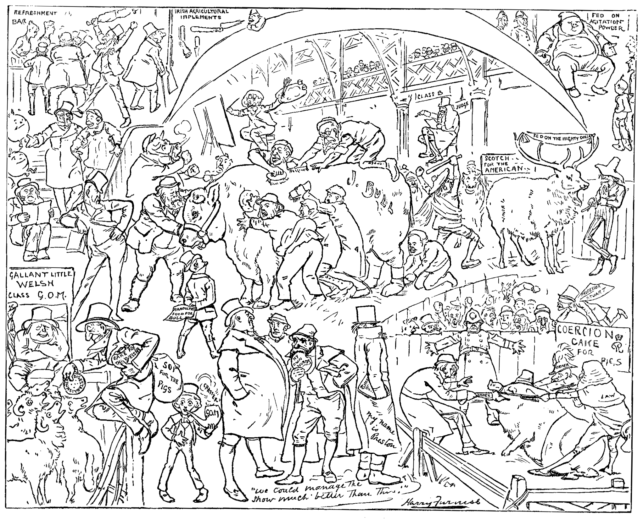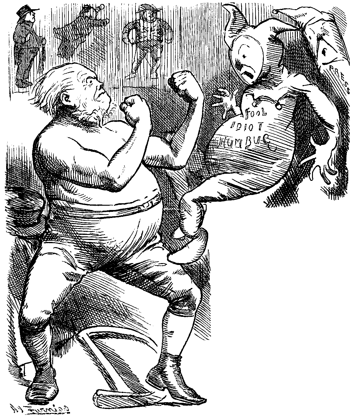 My nearest approach to human frailty, is, perhaps, to be found in a certain measure of absence of suavity. It is perhaps possible that my temper was,—I will not say soured, but—not sweetened by the vile attacks made upon me personally by Irish Members in Parliament during the last ten years. You remember what B-nt-nck said about me? I don't mean Big Ben, or Little Ben, but Lord George B-nt-nck. "If Br-ght," he said, "had not been a Quaker, he would have been a prize-fighter." I think there is about the remark some suspicion of lack of respect. But, also, it is not without some foundation of truth. I admit an impulse to strike back when I am hit; sometimes when I am not. Through two Parliaments the ragged regiment that live upon the contributions of their poor relations in domestic service in the United States have girded at me in the House of Commons. This was my reward for the rhetorical services I did for Ireland a quarter of a century ago. They pummelled me, kicked me, dragged my honoured name in the dust, and spat upon me in the market-place. That gross ingratitude I could never forgive, and if in reprisal, the cause I once advocated suffers, can I be held blameable?