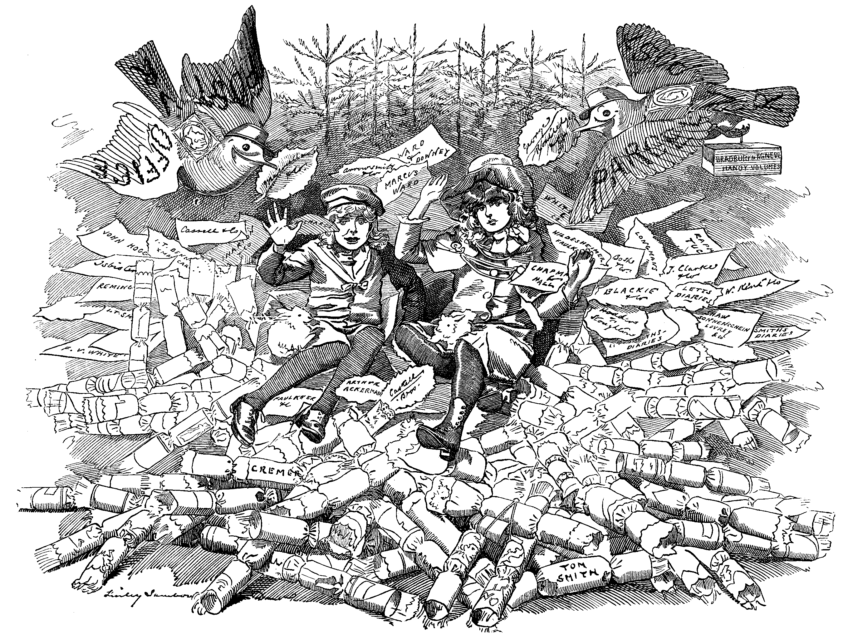 Various well-known Publishing Firms in the guise of Forest-trees discovered shedding their leaves.