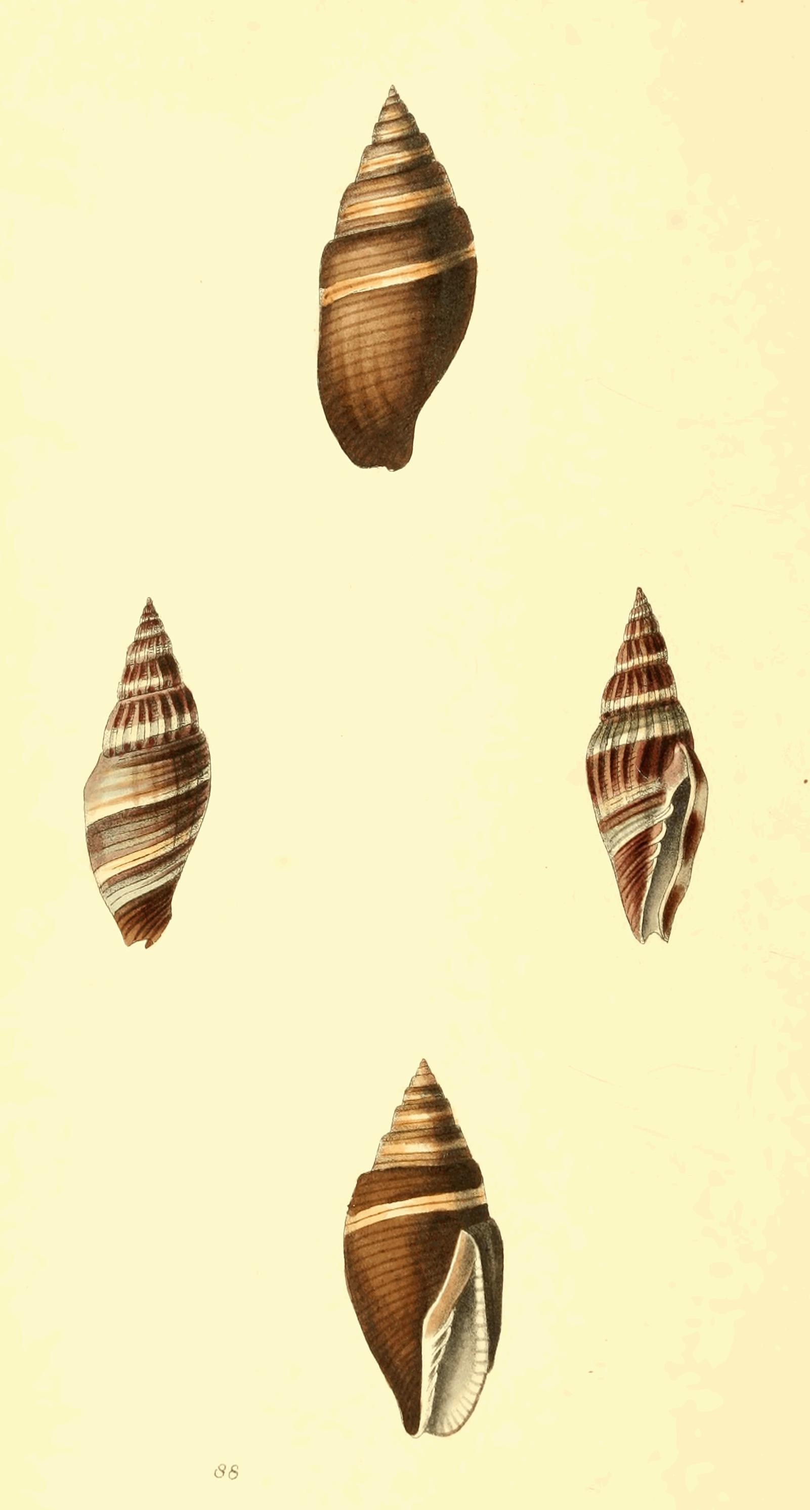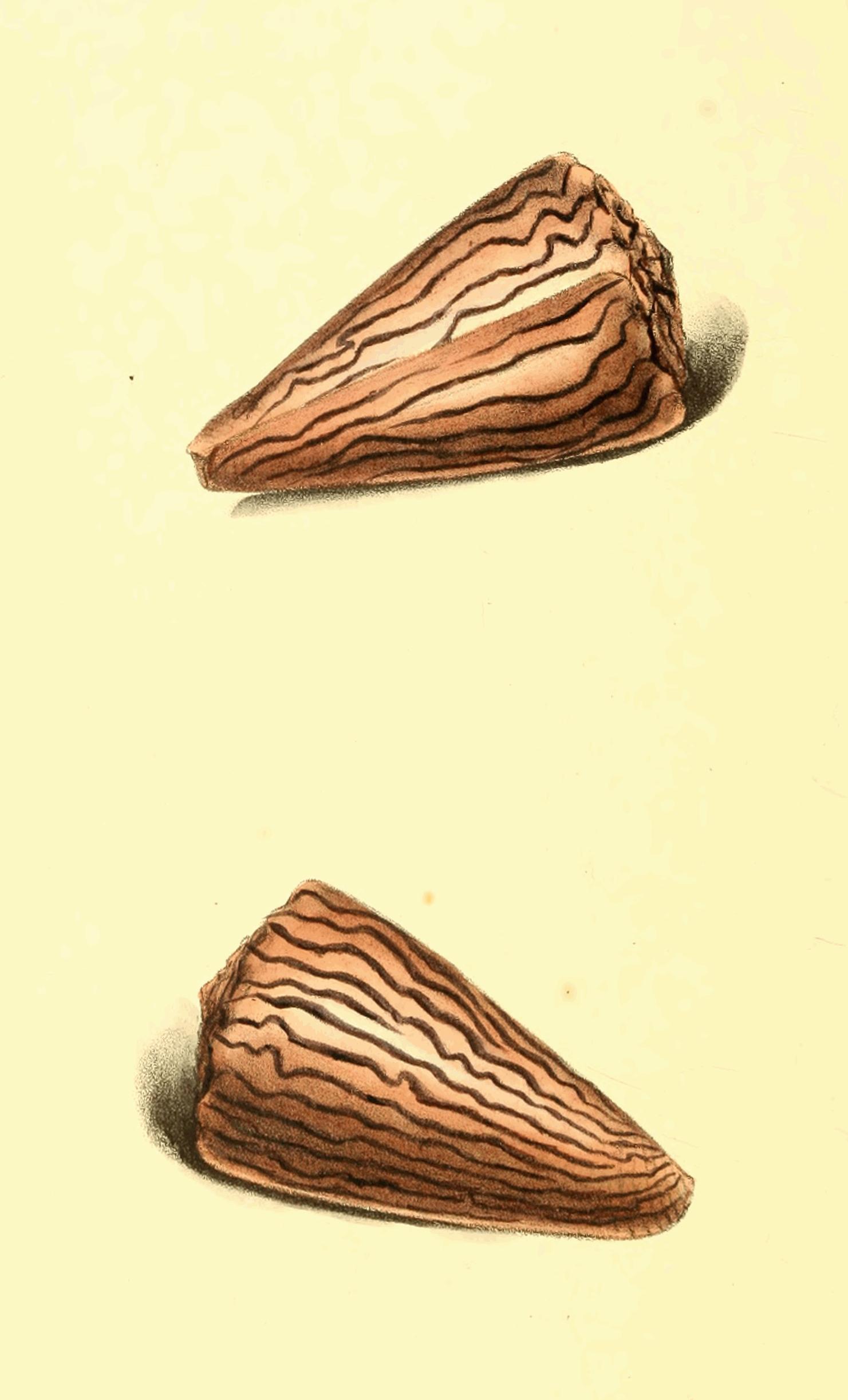 Having figured two or three species allied to this shell, it appears advisable to subjoin a more particular notice of it, and to point out those characters by which it may be detected through its numerous variations: this has been endeavoured in the specific character now formed, and appears to rest principally on the inner lip, which is always semicircular, down which, if closely examined inside, there is a depression as if it had been pared down with a knife; the base of the pillar also is so strongly truncated as to appear notched, and the broadest part of the mouth is always in the middle; these characters have been very ill attended to in all the figures above quoted, of which Seba gives no less than eleven, which vary only in the disposition and number of their bands.