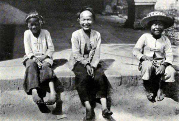 The chair-bearers have had their bowl of rice. They have seized a handful of peanuts which lie in little mounds on the table, and are hastily cracking their shells, and as they pick their kernels out they propel them with a jerk into their mouths. Finally they fill their diminutive[Pg 358] bamboo pipes with tobacco, and after three or four good long whiffs, they call out in a cheery voice, “Now let us go.” The chair is swung up on to their shoulders, they shuffle their feet until they get into step, and then, with a steady trot, they start for the next stage that lies two or three miles ahead.