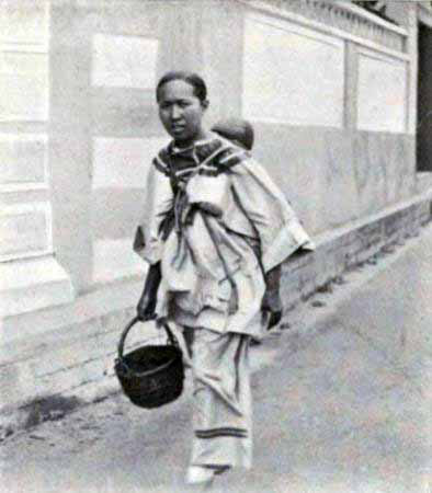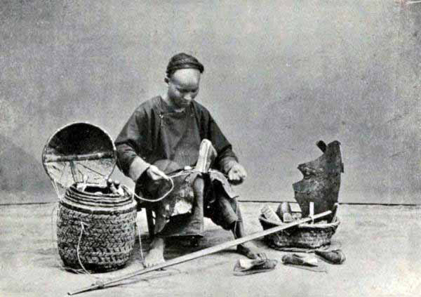 The chair-bearers for private reasons of their own refuse to accept these strings of cash until they have all been counted over and the five per cent. of bad ones that custom allows have all been eliminated. They insist, too, that the counting of these unwieldy coins shall be done on the ground and by themselves. Each string of one hundred was accordingly unloosed and cast upon the ground, and with the deft fingers of these unscrupulous bearers not only were the spurious cash spotted and laid aside in a heap by themselves, but a few of the really good ones were also abstracted in such a clever fashion that no one could catch the motion of their nimble fingers. In the dispute about the disappearance of the cash, one of the men was observed putting his bare toes on two or three that lay together and grasping them with them. He then quietly and naturally drew up his leg behind his back, and in an easy, unsuspicious way removed them and concealed them in his hand.