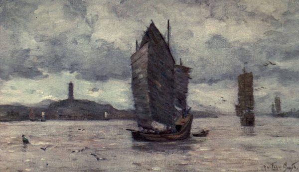 The scene on the river is just now a very pleasing one. Boats of various sizes and descriptions are making vigorous efforts to reach their destination at villages on the river. The glory of the setting sun that tipped the mountains in the near distance is gradually dying out, and the deep shadows settle on their sides, making them look grand and gloomy. The crows that have wandered far during the day in search of food, warned by the waning light, are hurrying in flocks up the river and from across the plain in the direction of the great tree upon which they are accustomed to roost during the night. The sounds of human voices from the boats anchored near us come to us with a pleasant sense of companionship as the night deepens on the river. The laughter at some side-splitting joke, the noisy discussion of some disputed point—for the Chinese never can talk in a low voice—the voice of some mother hushing her little one to sleep, all fill the air with a music of its own, and seem to be a pleasant ending to the events of the day. A spice of mystery, too, is added, for some of the crows that have been abroad, heedless of time, have delayed their return till darkness has almost settled on the land. Attracted by the lights of the boats they fly close over our heads so that we can hear the whirr of their wings, and then with a rush like an arrow from a bow they dash with the speed of lightning into the night and are gone, leaving an uncanny feeling in our minds, as though we had been visited by spirits from the vasty deep.