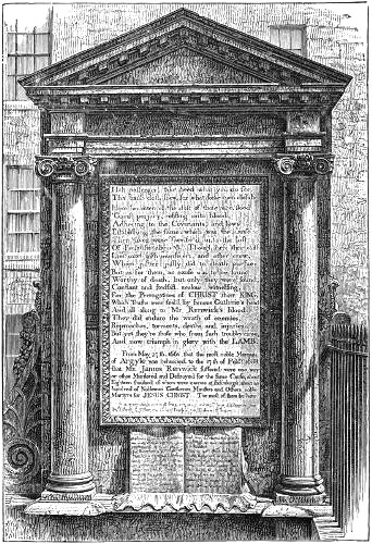 Respecting the next example, Mr. Edward Walford, M.A., wrote to the Times as follows: Close to the south-western corner of the parish[Pg 4] churchyard of Hampstead there has long stood a square tomb, with a scarcely decipherable inscription, to the memory of a man of science of the last century, whose name is connected with the history of practical navigation. The tomb, having stood there for more than a century, had become somewhat dilapidated, and has lately undergone a careful restoration at the cost and under the supervision of the Company of Clock-makers, and the fact is recorded in large characters on the upper face. The tops of the upright iron railings which surround the tomb have been gilt, and the restored inscription runs as follows:—
