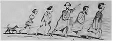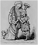 Cette vieille, coiffée d'un bonnet en loques, barbouillée de tabac, se traînant sur les débris de ses souliers éculés, et remuant, dans sa marche oblique, les restes bigarrés d'un cotillon en ruine, ne la reconnaissez-vous pas? ne l'avez-vous pas vue, par hasard, au coin de la borne, à la porte d'une noire allée où dans la loge d'un portier? Eh! mon Dieu, oui, c'est madame Pochet! Plus loin, voyez, ce vieux brave qui chante, trinque, boit, parle d'Austerlitz et de Wagram, et marche cahin-caha sur une jambe dépareillée..... Bonjour, vieux soldat! je sais ton nom; je t'ai vu au soleil dans l'allée de la Petite-Provence, ou jouant à la boule dans le carré Marigny: tu t'appelles Mathias l'invalide!