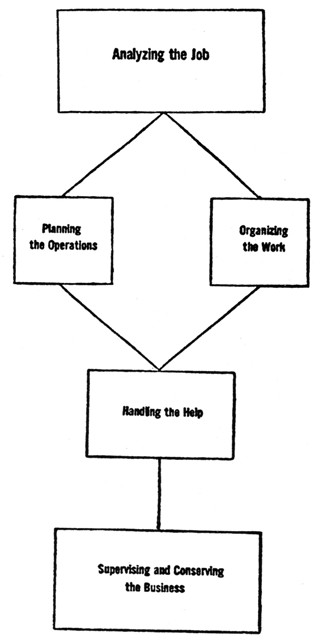 Consider one of the simplest forms of business enterprise—the delivery of a message. The errand boy—if he's worth his salt and is really managing his job—does in principle exactly what the general manager of the glass plant, the automobile factory, the textile mill, does when he comes face to face with his problems. In principle, mind you.