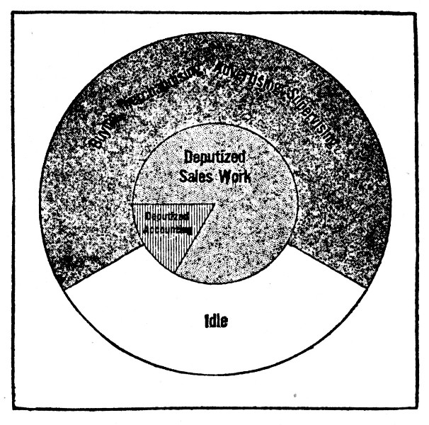 The handling of the error in last night's paper is something that will score down where the success of the business lies—and to lose on it means losing a vital point.[194] In short, it affects the permanent standing of the business enterprise. So does the securing of the radio advertisement. It's business news and something his readers must know about. So after it he goes. On the other hand, the institutional advertising will add only to the revenue of the newspaper. Don't mistake the point. He wants that contract, too. It will add materially to his profits. But getting it or not getting it will in no way affect the standing of the paper with its customers. School will keep just the same. So that particular job is on the other side of the line. That's why he has a sales manager.