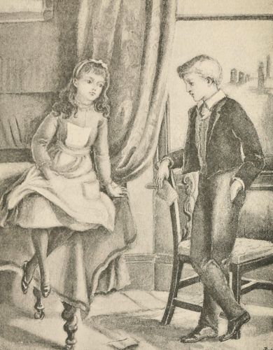 Kathie was seated as she loved to be—on the edge of a rather high table. Her skirts were short and her legs were long; from her present elevation she could swing the latter about delightfully. She gave them an extra energetic fling before she replied to her brother, and then, trying her best to look concerned and distressed, and only succeeding in giving to her funny little face an expression of comical demureness, she turned to Neville,—