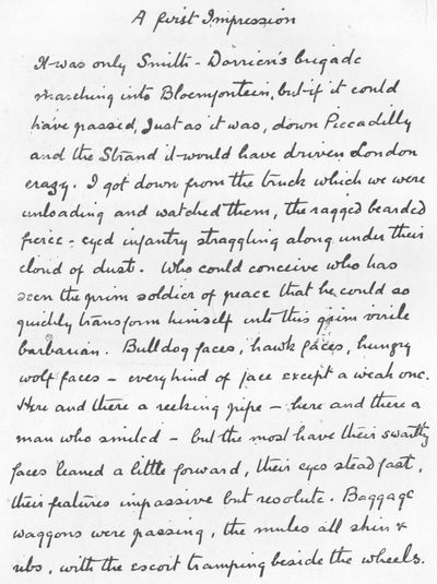 Lord Roberts is the first General of whom I have heard who ever recognised and acknowledged the Value and Power of the Press by establishing a Newspaper as a source of Entertainment and Information for an Army in the Field, and as a Medium for conveying such Arguments and Appeals as he wished to make to the Enemy. This he did, as one might say, the instant he conquered the first of the Boer Capitals, almost simultaneously with his appointment of a Military Governor and a Provost Marshal, and the establishment of a Police Force.