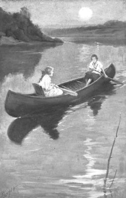"Oh, I'm coming right back!" replied the other. "I'm only stopping a moment to get some candy." She disappeared into the pavilion[Pg 7] and was out again in two minutes, bearing a large box of candy, of the most expensive make boasted by Carter's Landing. Down the steps she tripped, and crossed the strip of sand toward her canoe. But in front of the occupied rowboat she stopped, drawn perhaps by the need of companionship on this beautiful but solitary afternoon.