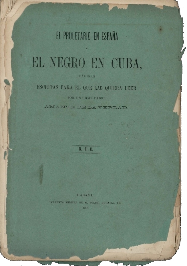 Hace ya muchos años, que una de esas que en Europa han dado en llamarse grandes potencias, de su propia autoridad, y que por ende, se están permitiendo intervenir hasta en los asuntos mas íntimos y familiares, y en regir los destinos de las que á su vez llaman pequeñas potencias; una de esas, repetimos, impulsada, nó por un sentimiento humanitario y noble, que es incapaz de sentirlos, sino celosa de la floreciente prosperidad de esta venturosa Isla, por lo que á sus colonias perjudica, y de acuerdo con sus demas compañeras de grandeza, empezó á perseguir, con un ardor sin igual, á los buques que hacian el tráfico de negros en la costa de Africa.[1]