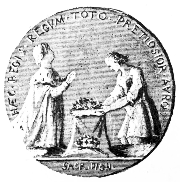 A medal was struck to commemorate this event, with the legend: HÆC REGIS REGUM TOTO PRETIOSIOR AURO, and S. Louis kneeling before an altar upon which is the crown of thorns. As to the particular tree of which the crown was composed, there was much difference of opinion. Clement of Alexandria calls it ex rubo, a sort of thicket; other writers a different sort of shrub or bush, called nerprun, or wild plum; and others, the white thorn.
