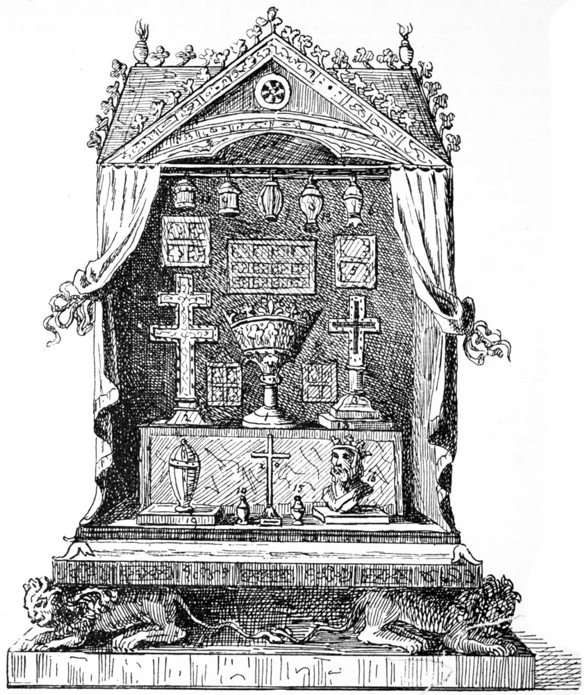 In a History of the Royal Abbaye of Saint Denis, published in London in 1795, we have some curious details connected with the church. "Every Sunday and Holy Day at mass, the Deacons and Sub-deacons, after having received the 'precious body of Our Lord,' repaired to a side altar to suck up through a reed, enclosed in a tube of enamelled gold, the 'precious blood,' according to a very ancient custom adopted in the church of S. Denis, which is retained without any variation to this day." Whether this was so, or whether it was the result of the anonymous writer's imagination, I cannot say, as I find nothing about it in other books that I have studied.