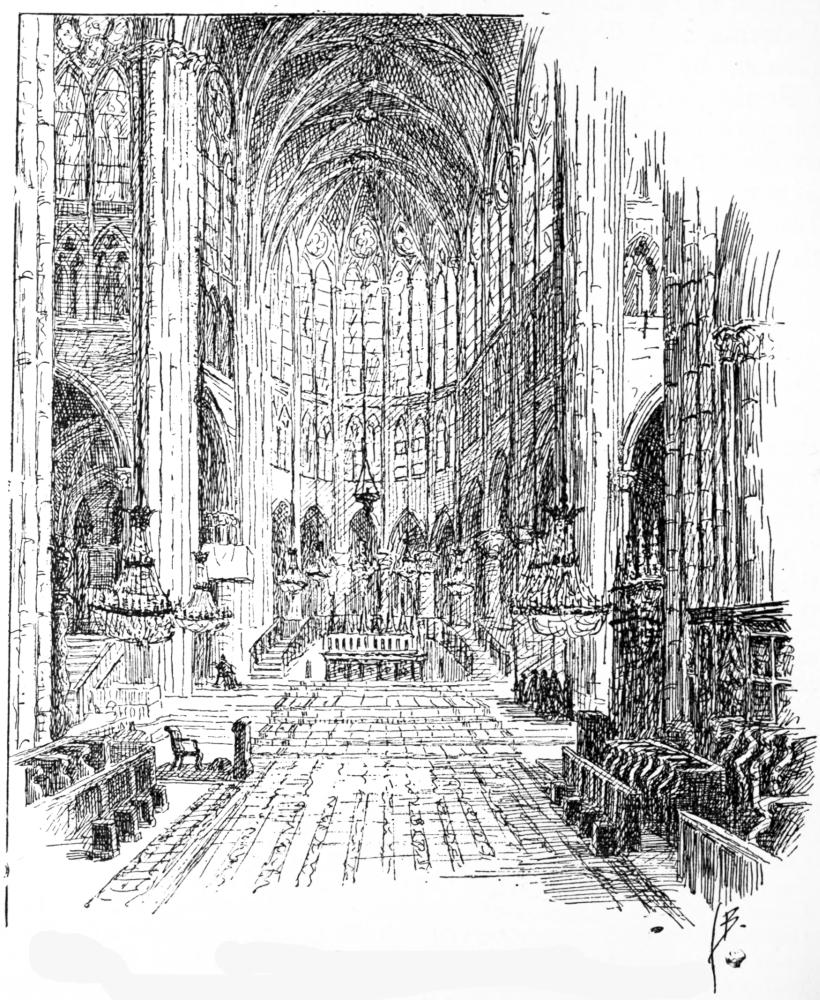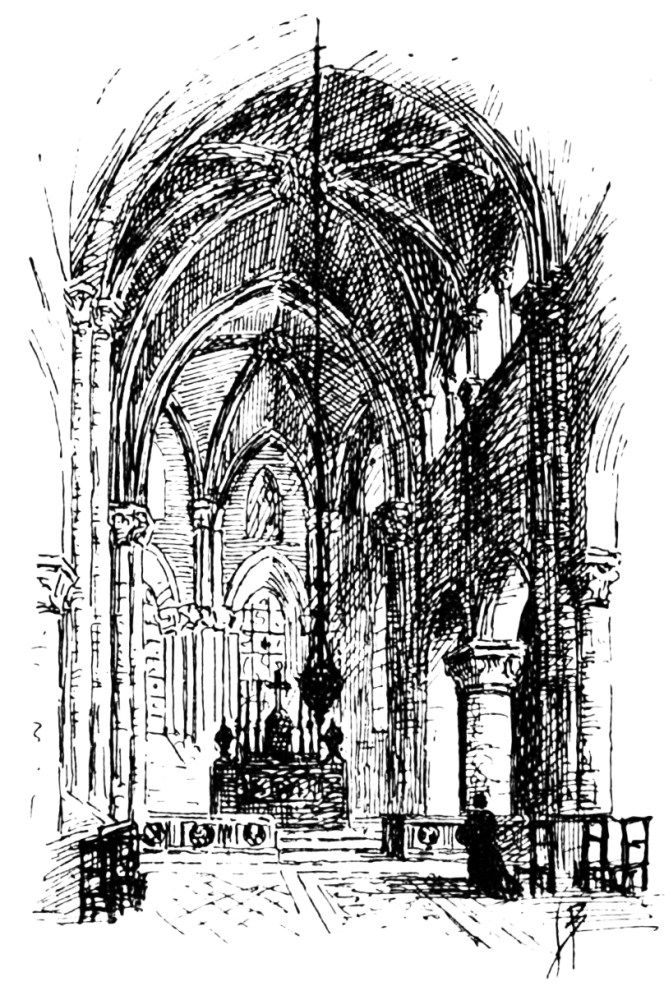 Although the Benedictine abbey church of S. Denis is some miles from Paris, it is so mixed up with the history of the capital that it ought not to be omitted in a series of "Paris Churches." Moreover, as it is by far the finest church in, or near, the metropolis, and one of the grandest examples of French 13th century architecture, no one ought to grudge the tiresome journey by train or tram in order to see it, even if his stay in Paris be limited to a few days. The only thing required to make it perfectly beautiful is new stained glass in the windows of the clerestory to replace that put up during the early years of this century, a horrible example of the execrable taste of the period.