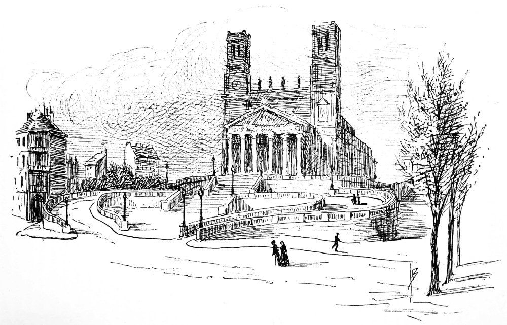 THE ABBEY CHURCH FROM THE GRANDE PLACE.