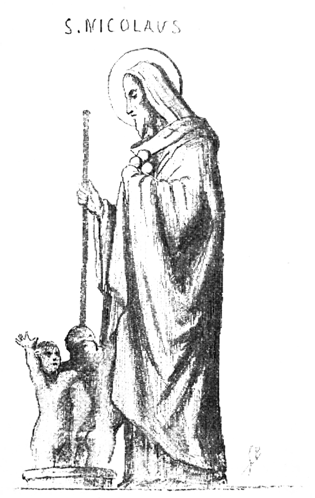 The legend of S. Denis, the patron of France, is exceedingly picturesque. By some ecclesiastical authorities he is said to have lived in the 1st century, by others in the 2nd or 4th, but by most he is one and the same person as Dionysius the Areopagite. Hilduin, abbot of S. Denis at the beginning of the 9th century, seems to have had no doubt upon the subject, and in art the Saint and the disciple of S. Paul have always been looked upon as the self-same personage, although tradition records the existence of another S. Denis, a bishop of Paris, in the 3rd century. Dionysius was an Athenian philosopher named Theosophus. Travelling in Egypt to study astrology with a companion named Apollophanes, they were surprised by a strange darkness that came over the heavens, and were naturally much troubled thereby. Returning to Athens, Dionysius heard S. Paul preach, and thereupon being converted to Christianity, he understood that the darkness which he had seen at Heliopolis was none other than that which fell upon the earth for the space of three hours when the Blessed Redeemer was crucified. Baptised and ordained priest, Dionysius subsequently became bishop of Athens; and in some of the writings attributed to him he relates that he travelled to Jerusalem to see the Blessed Virgin, whom he found continually surrounded by a dazzling light, and attended by a company of Angels. He also gives an account of her death at which he was present with certain of the Apostles. After this, he returned to Athens and was subsequently present at S. Paul's martyrdom in Rome. Thence he was sent by S. Clement to preach the Gospel, together with a priest named Rusticus, and a deacon Eleutherius. Arrived at Paris, an exceeding great city full of people and provided with all the good things of the earth, they found it so attractive that it seemed to them another Athens, and so they sojourned there, teaching the people, who were learned in all things but the way of truth. S. Denis then sent missionaries into other parts of Gaul, and into Germany. But these successes were not pleasing unto Satan, and so he stirred up the nobles against the good bishop, who was accused before the Emperor Trajan. Some say it was Domitian, but in either case the result was the despatch of one Frescennius, a pro-consul, from Rome, with orders to throw Denis and his companions into prison. This was done, and finding that they would not retract, they were put to death upon the Hill of Mercury (who was so much honoured by the Gauls), and which was subsequently called Montmartre (Mons Martyrum).