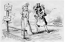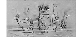 Le jour de la déchéance du cigare, le gouvernement des pipes a donné un grand bal national; nous en offrons un fac similé: toutes les pipes y étaient, sans distinction de rang, d'âge ni de sexe, depuis la pipe de lettre jusqu'à la pipe d'écume de mer incrustée d'or et de diamants, pipes culottées et déculottées. La fête a fini par une ronde furieuse que les pipes ont dansée autour d'un malheureux paquet de cigares, délaissé de la nature entière.