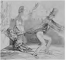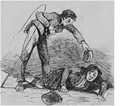 Au couteau qu'il tient à la main, on est d'abord tenté de prendre le Chourineur pour un vaurien; mais son nez indique qu'il y a du bon dans cet homme, et que ce n'est qu'un Chourineur égaré, non perdu, qui finira par se retrouver.