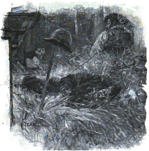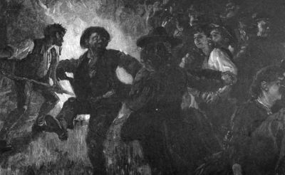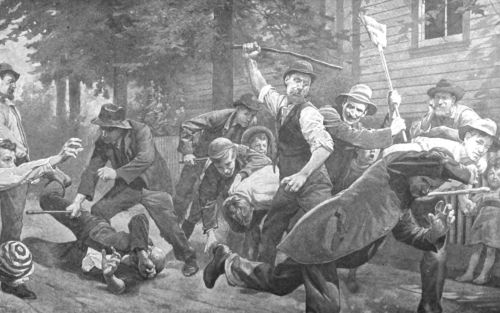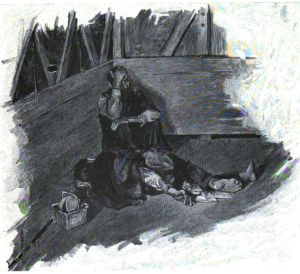 On the journey we met another caravan, bound West by way of Chicago.[Pg 32] There were two families, and the children numbered sixteen; the oldest ranging from fifteen to twenty, and the youngest had just appeared. We camped together in a wood for a night and a day, and seldom have I sojourned in such company. John had given me a place with him in the wagon, but now the woman with the babe was given the wagon, and John and I slept, or tried to, "in the open." In the other wagon, both sexes, young and old, were crowded into a space not much larger than the ordinary omnibus, and the vermin would have made sleep impossible to any other order of beings. The next day, being Sunday, was given over to play and revel, and the poor horses had a respite from their sorrows. The children invented a queer sort of game, something like "shinny," and used a dried-up cat's head as block. They kicked, pounded, scratched, and cursed one another; but when the play was over all was well again, and the block was tucked away in the wagon for further use. Late at night the journeys were taken up once more, one caravan moving on toward Dakota, and the other toward the Gulf.