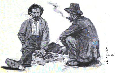 Of those who are born on the road, perhaps the least known are the children of the ambulanters. The name is a tramp invention, and not popular among the ambulanters themselves. They prefer to be called gipsies, and try at times, especially when compelled by law to give some[Pg 30] account of themselves, to trace their origin to Egypt; but the most of them, I fear, are degenerated Americans. How they have become so is a question which permits of much conjecture, and in giving my own explanation I do not want it to be taken as applicable to the entire class. I know only about fifty families, and not more than half of these at all familiarly; but those whom I do know seem to me to be the victims of a pure and simple laziness handed down from generation to generation until it has become a chronic family disease. From what they have told me confidentially about their natural history, I picture their forefathers as harmless village "do-nothings," who lounged in corner groceries, hung about taverns, and followed the fire-engine and the circus. The second generation was probably too numerous for the home parish, and, inheriting the talent for loafing, started out to find roomier lounges. It must have wandered far and long, for upon the third generation, the one that I know, the love of roaming descended to such a degree that all North America is none too large for it. Go where one will, in the most dismal woods, the darkest lanes, or on the widest prairies, there the ambulanter may be found tenting with his large and unkempt family. He comes and goes as his restless spirit dictates, and the horse and wagon carry him from State to State.