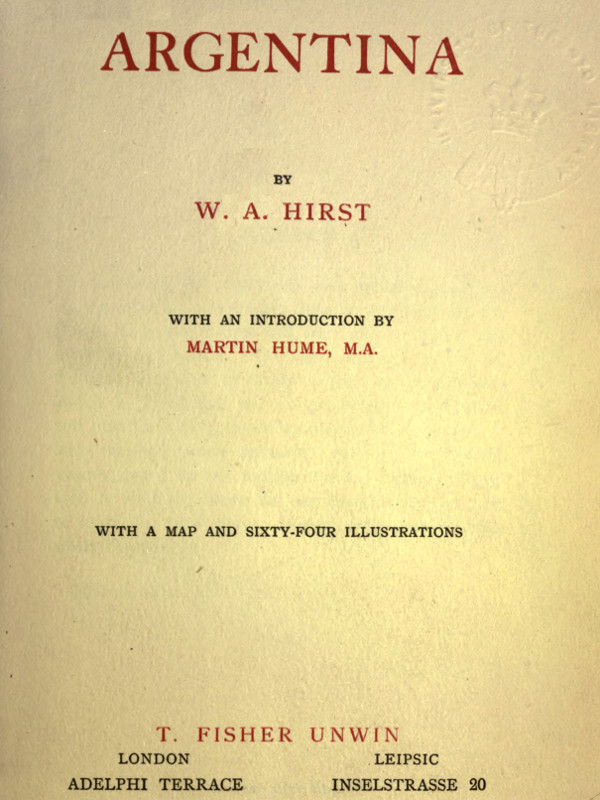 In establishing the commercial and industrial greatness of Argentina my countrymen have co-operated with her people for a longer time and more efficiently than any other foreign nation. The land and the people are therefore a subject of lively interest to Englishmen, and it is hoped that this sketch, however inadequate, will help towards a closer knowledge of Argentina. I have received much valuable assistance from many sources, but I do not indicate them, because I do not wish to shift the blame for any inaccuracies that may be found in these pages. For all such mistakes I am solely responsible.