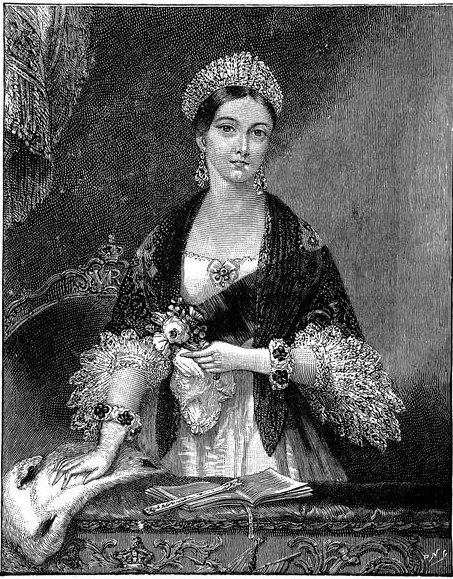 The history as to how the first portrait of Her Majesty after her coronation was obtained is also full of interest. The Queen is represented in all her youthful beauty in the Royal box at Drury Lane Theatre, and it is the work of E. T. Parris, a fashionable portrait painter of those days. Parris was totally ignorant of the fact that when he agreed with Mr. Henry Graves, the well-known publisher, to paint "the portrait of a lady for fifty guineas," he would have to localise himself amongst the musical instruments of the orchestra of the National Theatre, and handle his pencil in the immediate neighbourhood of the big drum. Neither was he made aware as to the identity of his subject until the eventful night arrived. Bunn was the manager of Drury Lane at the time, and he flatly refused to accommodate Mr. Graves with two seats in the orchestra. But the solution of the difficulty was easy. Bunn was indebted to Grieve, the scenic artist, for a thousand pounds. Grieve was persuaded to threaten to issue a writ for the money unless the "order for two" was forthcoming. Bunn succumbed, and the publisher triumphed; and whilst the young Queen watched the performance, [pg 228] she was innocently sitting for her picture to Parris and Mr. Graves, who were cornered in the orchestra. Parris afterwards shut himself up in his studio, and never left it until he had finished his work. The price agreed upon was doubled, and the Queen signified her approval of the tact employed by purchasing a considerable number of the engravings. The reproduction of the picture in these pages becomes the more interesting from the fact that it is done by permission of the still living occupant of one of the two orchestra seats—Mr. Henry Graves.