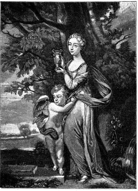 The two illustrations we now give of pictures—one of which is still missing and the other recovered after a long lapse of time—are both after Sir Joshua Reynolds. It is certain that the missing one will never be seen again. Reward after reward has been offered, but all to no avail—"The Countess of Derby," by Sir [pg 231] Joshua, so far as the original goes, is a thing of the past. The mystery as to its sudden disappearance has never been fully cleared up, but it is indisputable that the Earl of Derby of the period had this picture painted of his wife, that he quarrelled with her, and that just at this time the picture vanished. Little room is left for doubt that the Earl himself destroyed the work.