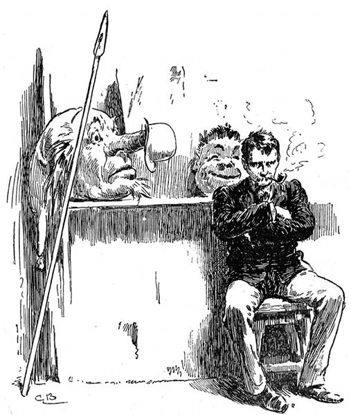John again inserted his knuckles in his eyes, and waved off the smoke from his pipe. And then he recognised his uncanny visitor. It was the little son of the widow who lived under his flat. He was one of the imps of King Pippin's kingdom in the pantomime, and doomed for a small pittance to indulge his apish tricks nightly with the gnomes and fairies of that fanciful realm.