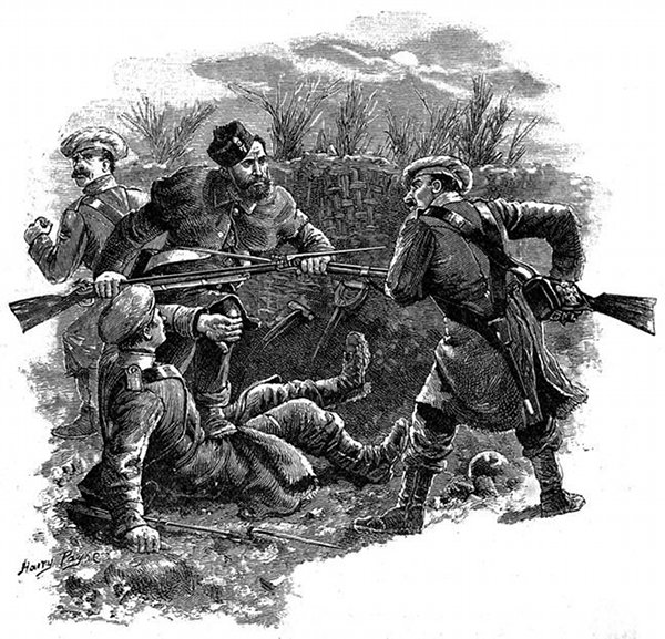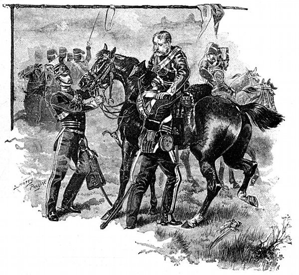 By this time Sir Edwin had arrived. He drew the picture with the Highlander in the very act of relieving himself of an expression not often heard in the presence of Royalty. Our drawing is a sketch of the figures in the painting of this highly interesting scene.