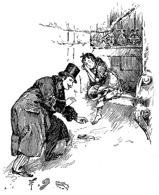 "Yes," assented Willie, with childish naïveté; and then, putting his head nearer to John's, as though to take him into still closer confidence—"Do you know, I've often seen you, and wanted to speak to you, but somehow I've not liked to. I've watched you when you weren't looking, and you've always seemed to look like—you don't mind a little boy saying it, Mr. Daubs—like that." Willie pointed to a mask of one of the ogres. John did not think the comparison very flattering, and felt very uncomfortable. The next instant the child was nestling closer to him; a pair of thin arms were clasped tightly round John's neck; and the lips which again pressed his whispered softly: "But you're not a bit like that now, Mr. Daubs."